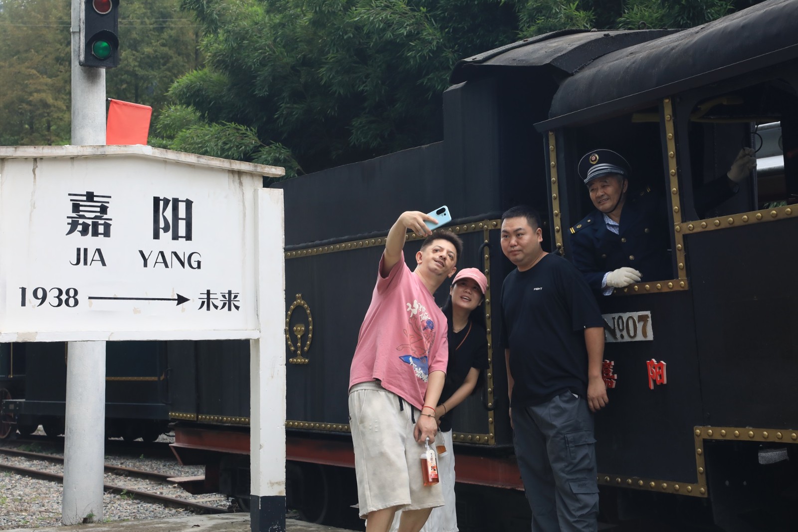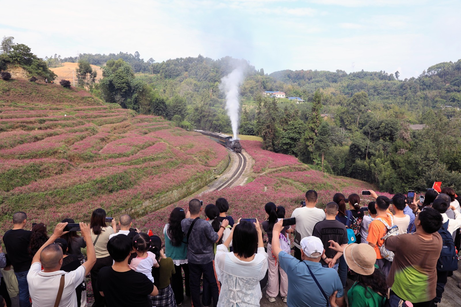 国庆期间,景区向乘坐嘉阳蒸汽小火车的游客发放五星红旗,让节日气氛沿着铁轨传播到每一处风景。段家湾的浪漫千日红、亮水沱的铁龙飞虹,更是令游客朋友如痴如醉。