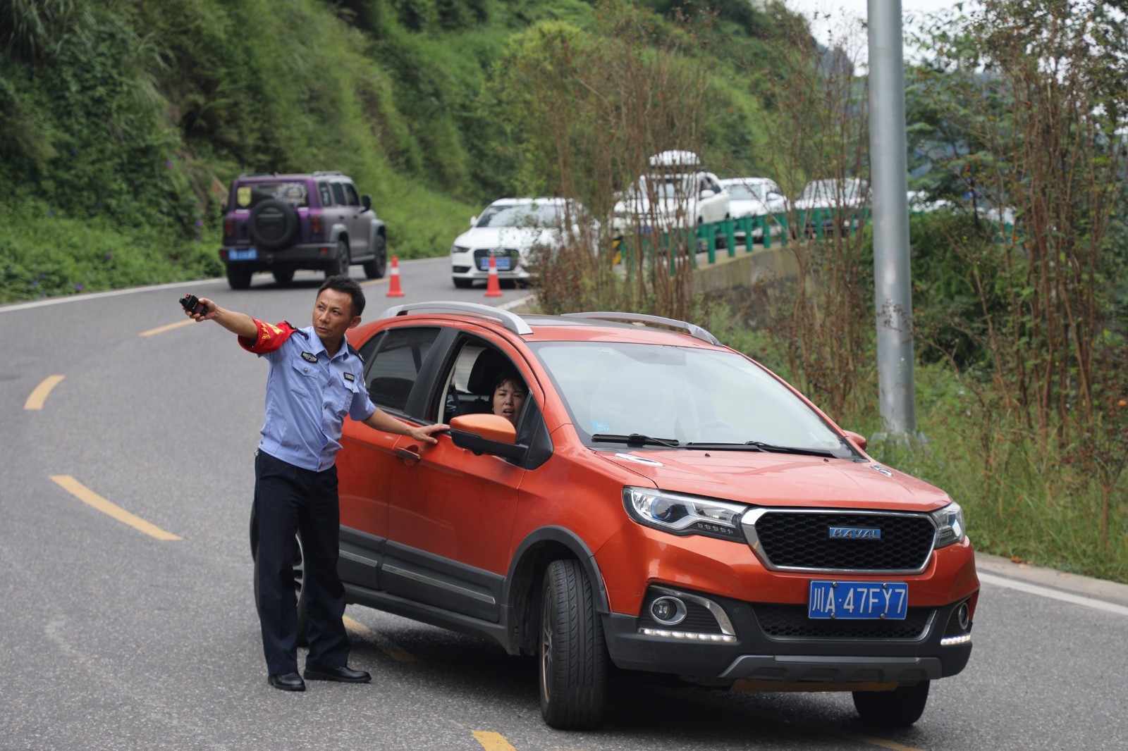 为应对旅游高峰,在集团公司保卫部及救护队的大力支援下,景区增派交通管理人员,在新开通的应急旅游通道重点路段分区域布控,引导游客车辆安全进出、停放。售票、讲解、摆渡、咨询人员齐上阵,以有序、热情的服务全方位切换“宠游客”模式。