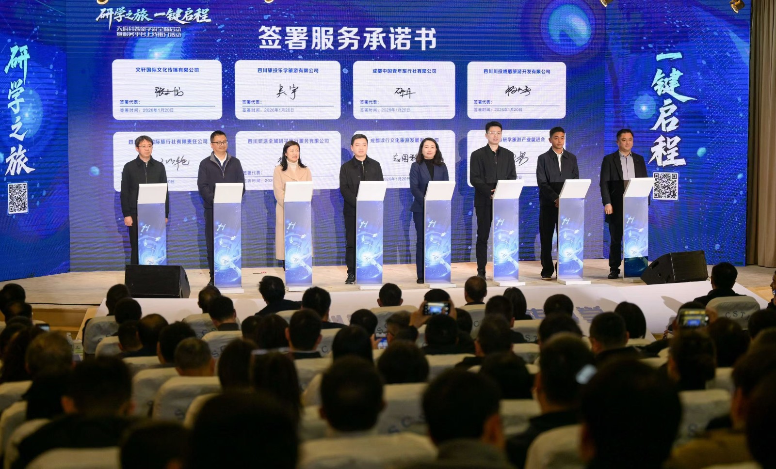川投峨旅公司常务副总经理杨大春出席活动,与其他服务机构代表一同签署《优质服务承诺书》,郑重承诺坚守优质、安全、诚信底线,规范服务流程,为广大参与者提供高质量的研学体验,以实际行动助力四川科普研学产业规范化发展。